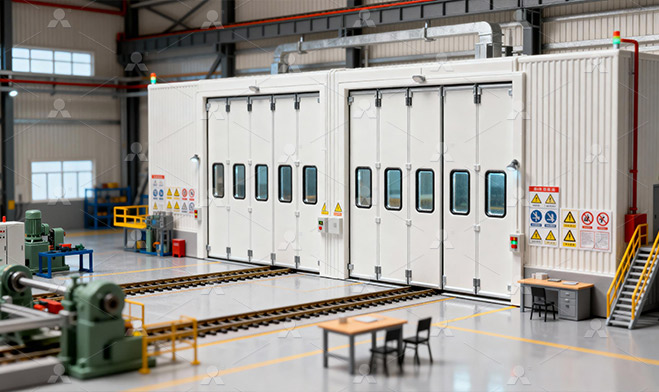 Камера для пескоструйной обработки отделена от камеры для нанесения краски. Площадь адсорбции краски после дробеструйной обработки в 1,2-1,4 раза превышает средний показатель по отрасли благодаря применению уникального процесса нанесения , который гарантирует максимальную адгезию краски, обеспечивает эффективность и качество последующего нанесения и финального покрытия.Профессиональный испытательный стенд