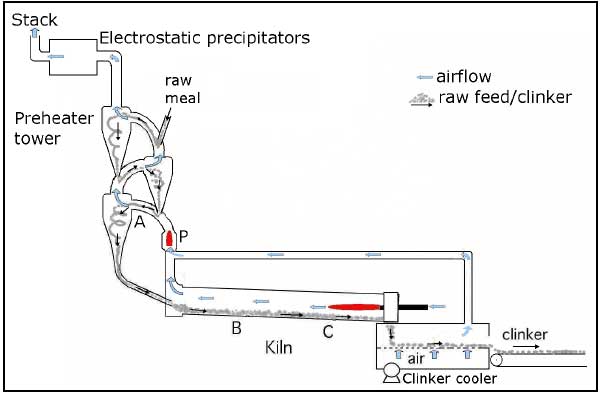 Известняк подается в печь через желоб на конце печи. Благодаря наклону и медленному вращению корпуса печи известняк катится по окружности с одной стороны и перемещается от конца печи к головке печи с другой стороны вдоль оси. Топливо распыляется в печь с конца печи через горелку для сжигания, и тепло передается известняку посредством излучения, конвекции и теплопроводности. После того, как известняк прокаливается в негашеную известь в процессе перемещения, он выгружается с конца печи, а высокотемпературный дымовой газ поступает в систему удаления пыли с конца печи.
