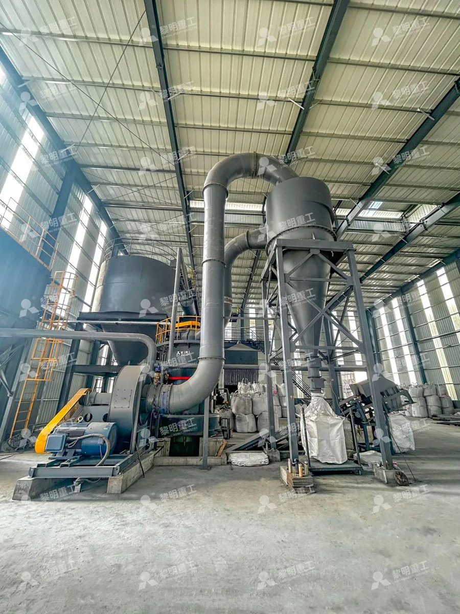 The raw materials are uniformly and quantitatively fed into the main machine grinding chamber for grinding by the variable frequency belt feeder. The ground materials are sent to the powder selector by the fan airflow for classification. Under the action of the analyzer, the materials that do not meet the fineness requirements fall into the grinding chamber for re-grinding, and the qualified materials are followed by the airflow through the pipeline into the cyclone powder collector for separation and collection, and are discharged through the discharge device as the finished powder. The separated airflow enters the fan through the return air duct at the upper end of the cyclone powder collector. The production system operates under negative pressure and closed conditions, and is equipped with a pulse dust collector without dust spillage, which meets national environmental protection standards.